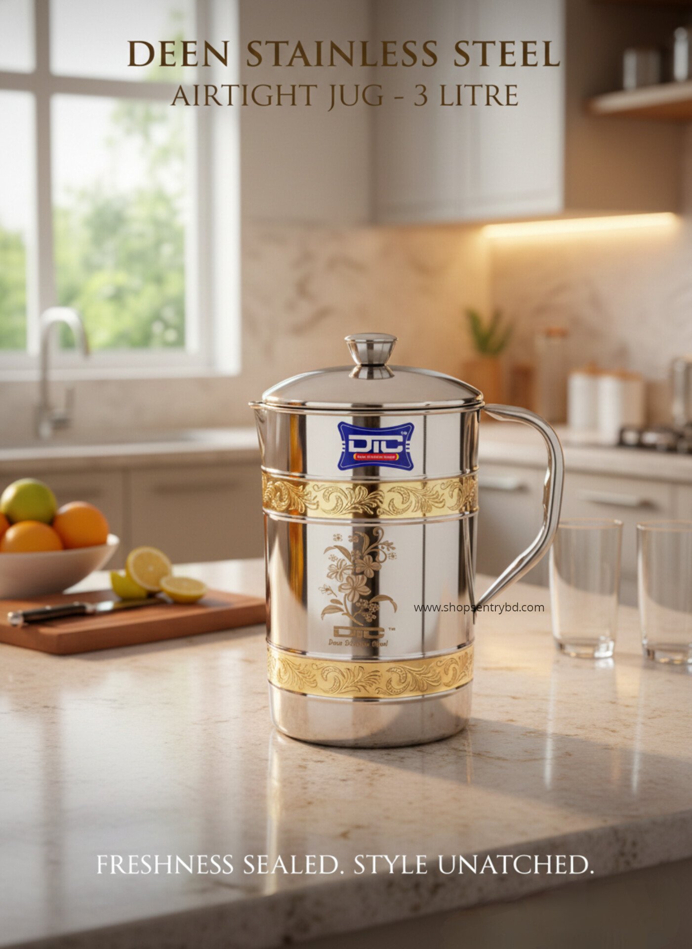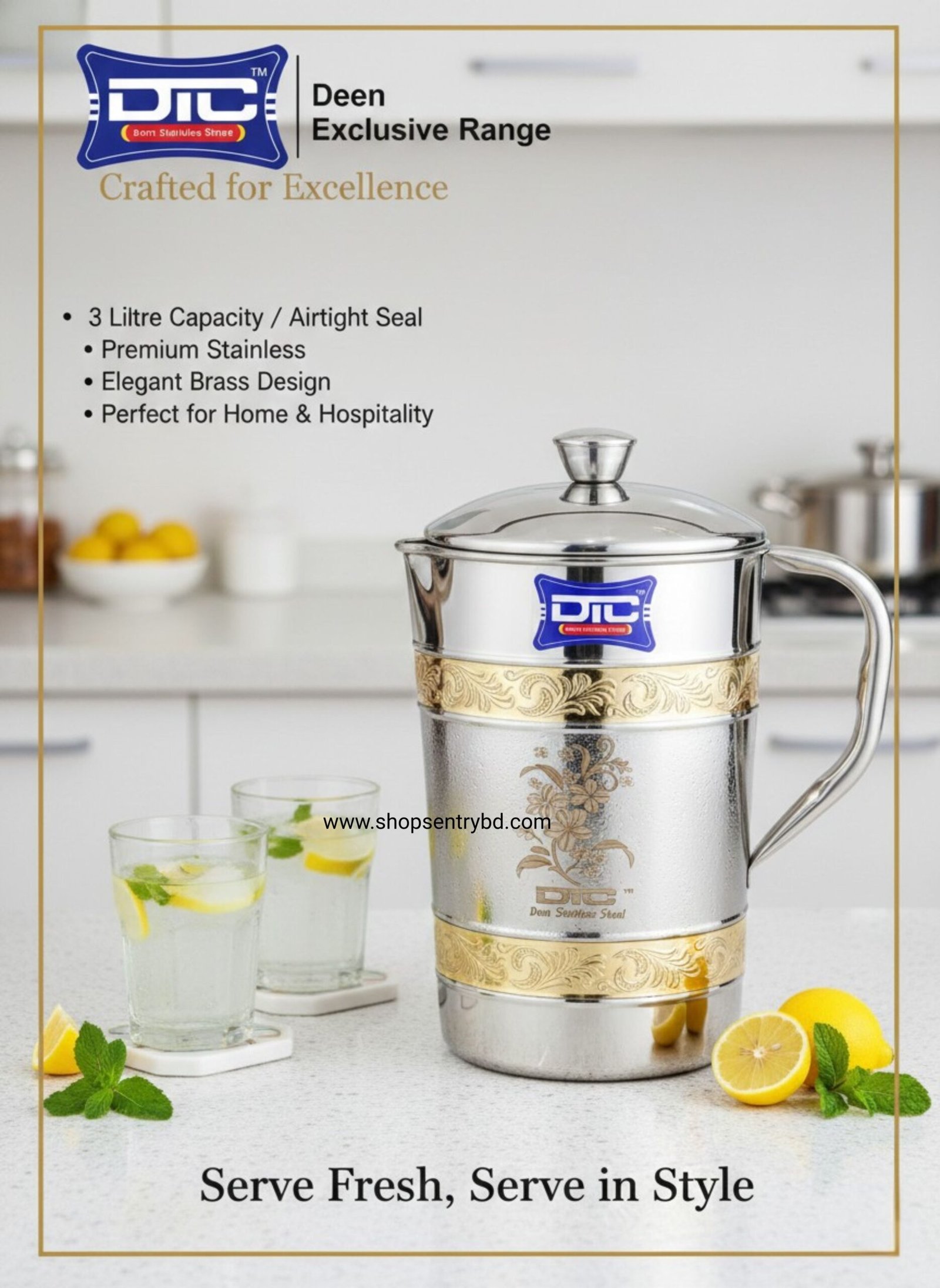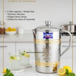 ফিরে এলো আমাদের বেস্ট সেলিং ৩ লিটার স্টিল জগ। পিতল পট্টির ইউনিক ডিজাইনে এটি যেমন টেকসই, তেমনি ঝকঝকে। অতিথি আপ্যায়নে নিজেকে আলাদা করে তুলুন।